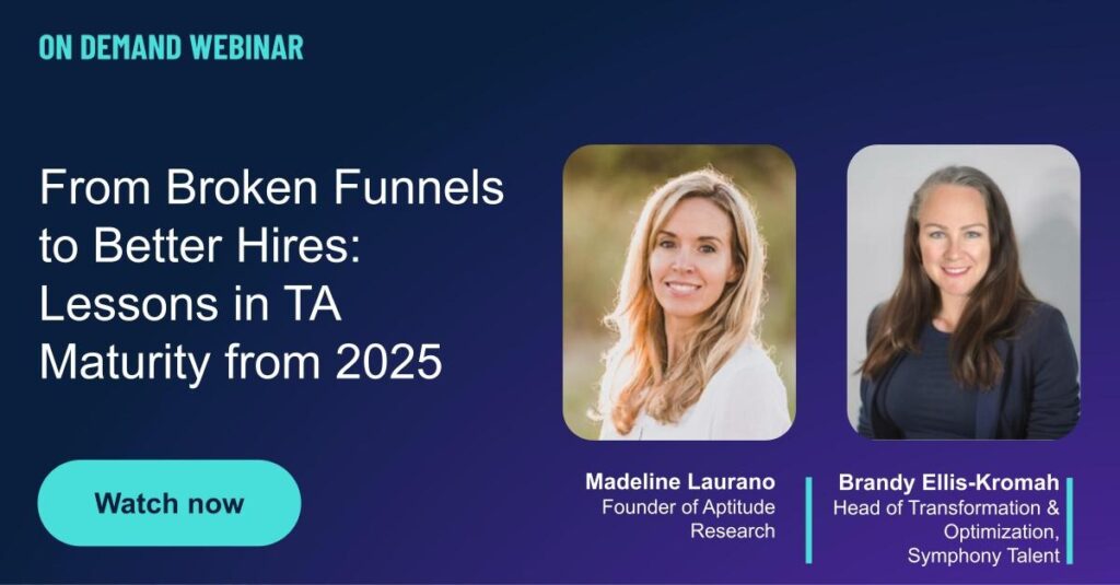 Interested in learning more? Check out our on-demand webinar with Aptitude Research’s Madeline Laurano, “From Broken Funnels to Better Hires: Lessons in TA Maturity from 2025.”